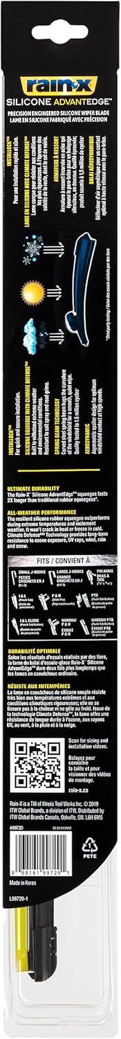 Rain-X Silicone AdvantEdge wiper Blades lasts 2x longer than traditional wiper Blades. This advance TECHNOLOGY features a precision engineered silicone rubber squeegee, with a proprietary graphite coating, specially formulated for use in wiper Blades to provide ultimate durability and extreme all-weather performance.