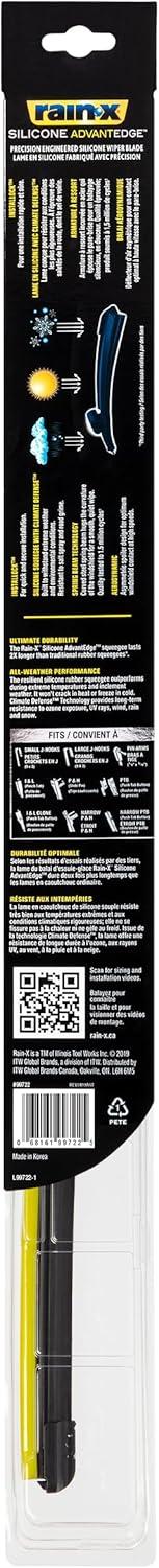 Rain-X Silicone AdvantEdge wiper Blades lasts 2x longer than traditional wiper Blades. This advance TECHNOLOGY features a precision engineered silicone rubber squeegee, with a proprietary graphite coating, specially formulated for use in wiper Blades to provide ultimate durability and extreme all-weather performance.